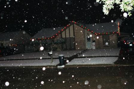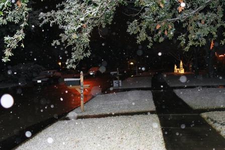 This has been an amazing year with weather and trips. First a hurricane comes through and now snow in December. It started coming through our area between 5 PM to 6 PM as the temperature dropped. It had been raining some throughout the day.
