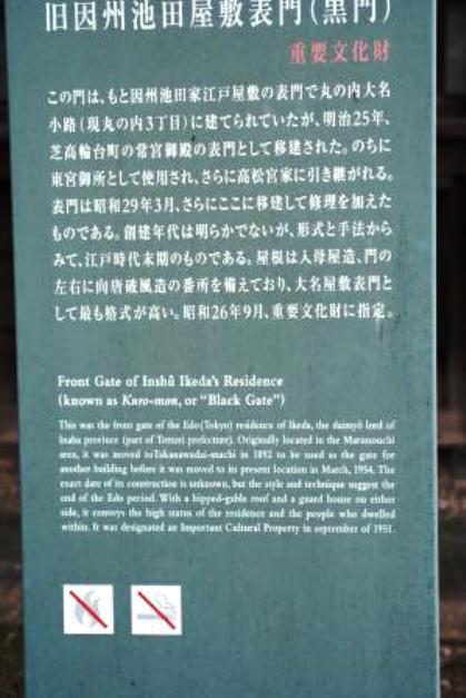 The museum complex had one admission price for all five exhibits: Honkan (Japanese Gallery), Toyokan (Asian Gallery), Heiseikan (Japanese Archaeology Gallery), Hyokeikan (example of Western-style architecture), and the Horyuji Homotsukan (Gallery of Hoyuji Treasures). While there, we visited the Honkan, then the Heiseikan, and Toyokan galleries. We ate at the Restaurant L'accord located in the Toyokan building. We then went into the Hyokeikan for a few minutes, went by the Kuromon (The Black Gate) that used to adorn the main Edo residence of the Ikeda family, and went through the Horyuji Homotsukan.