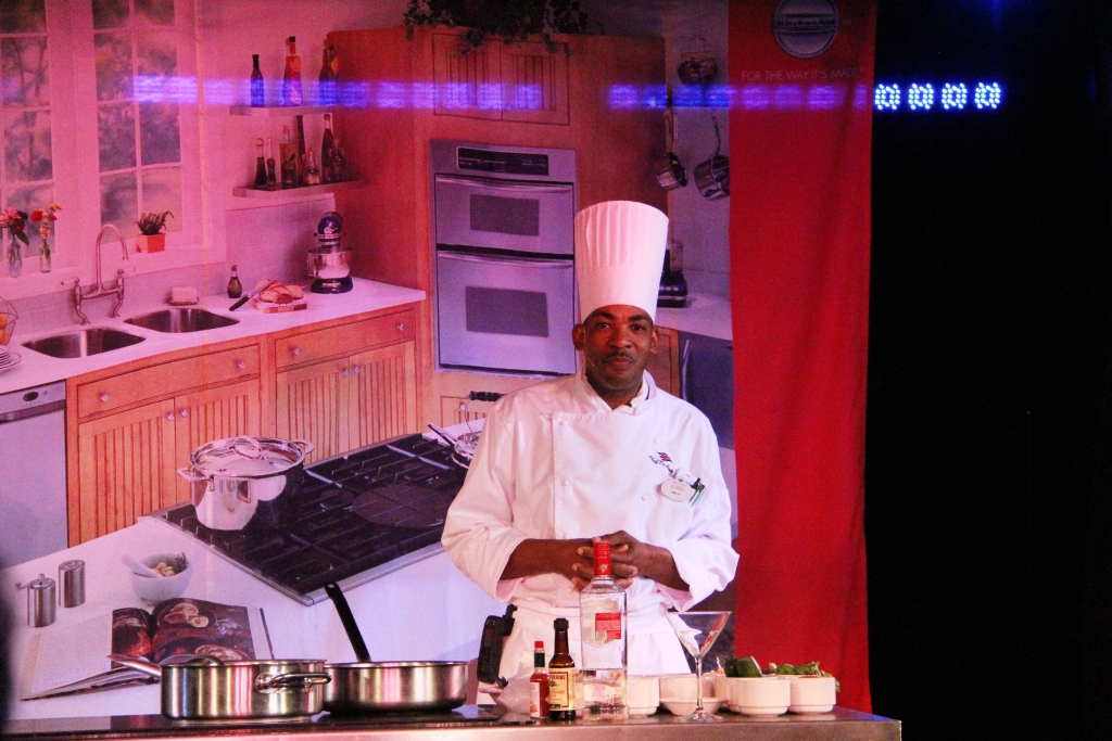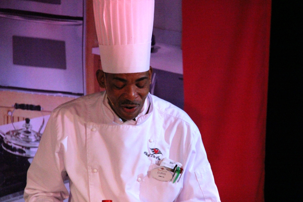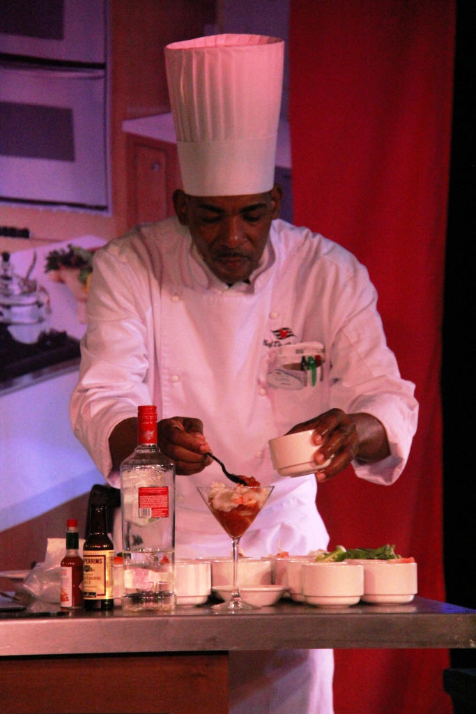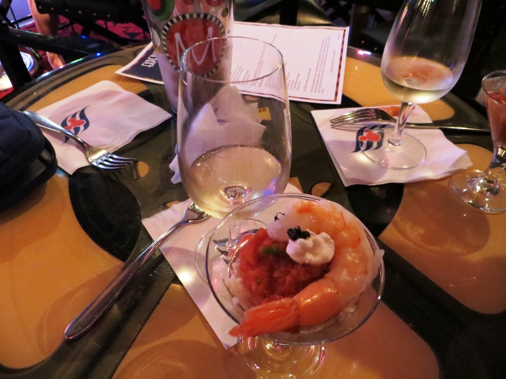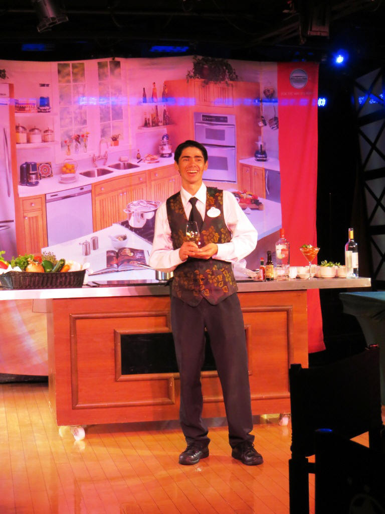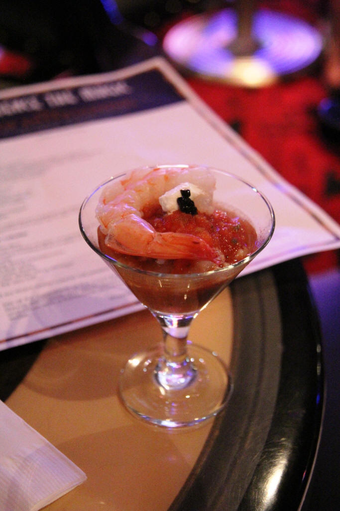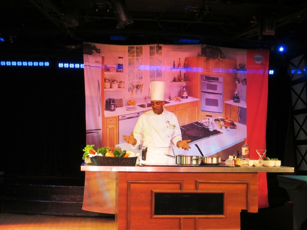 The first full day on the cruise had a demonstration called "Disney's Art of Entertaining: The Appetizer" presented at 10:30 AM in the Studio Sea. One of the ship's Chef de Cuisine prepared a Lobster and Shrimp Martini.