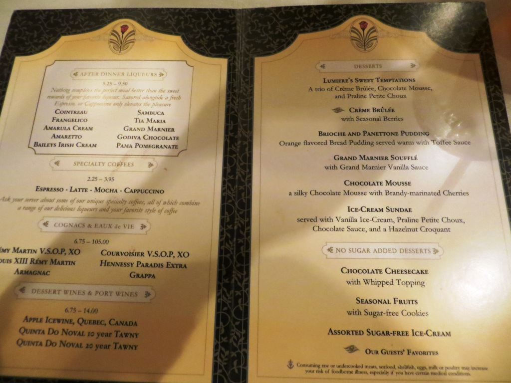 Dinner in Lumiere's: