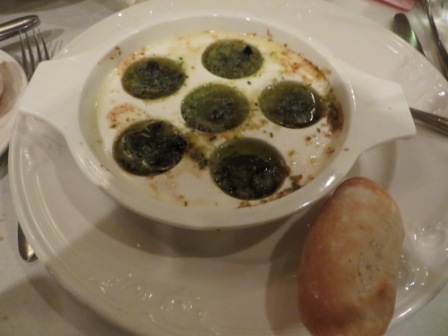 From the dinner menu, we selected as appetisers the Duck Confit and the "Prince Eric's Escargot Gratinee.